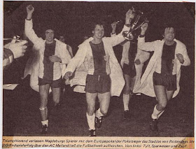 And double lucky Milan – there was no doubt the Italians were to collect one more cup. They did it the previous year after a scandalous final against Leeds United. They convinced nobody in 1973, the judgment was against them, their win was heavily tainted. Now Milan had a chance to redeem themselves – Magdeburg was no Leeds. It was not going to be a final, but a walk-over… predictions in football are more often wrong than right. In the drizzle of Rotterdam Milan and Magdeburg came on the pitch in front of small crowd . Only 4000 fans bothered to attend… apart from politics – East Germans were not allowed to travel to the West – the numbers tell how much everybody everywhere was convinced who will win. The final was not to be even a match worth watching… after all, who wants to see a game already knowing the result?